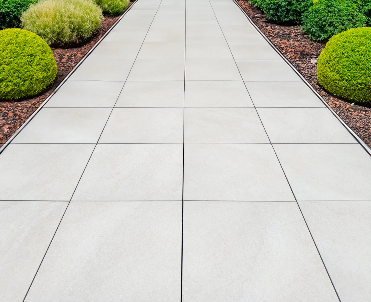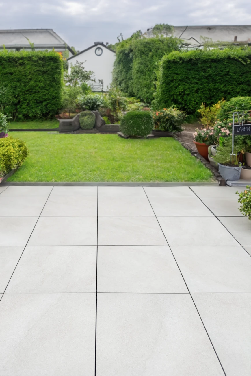Sandy Stone sind pflegeleichte Terrassenplatten. Die Ivory Platte hat einen zarten warmen Sandton. Die angenehme Farbgebung vermittelt ein Gefühl von Entspannung und Komfort.