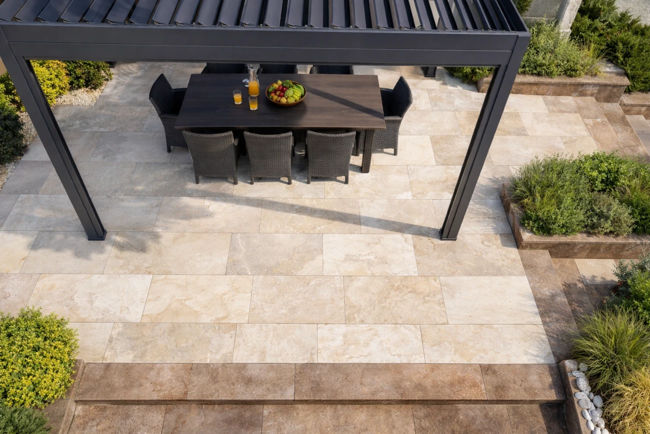 Płyta tarasowa Rocknest Richmond wyróżnia się realistycznym odwzorowaniem naturalnych materiałów, dzięki czemu stanowi doskonałą alternatywę dla kamienia naturalnego. Neutralna kolorystyka pozwala na łatwe dopasowanie do różnych stylów architektonicznych – od minimalistycznych przestrzeni po bardziej dekoracyjne ogrody. Format 50×100 cm umożliwia tworzenie eleganckich, uporządkowanych układów, które optycznie powiększają przestrzeń.