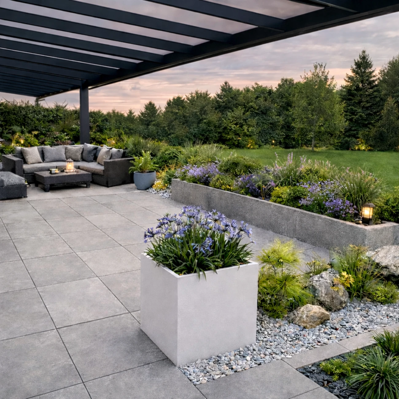 Concreteo Grey w tym rozmiarze doskonale sprawdzi się jako wykończenie tarasów i balkonów, ścieżek ogrodowych, stref wypoczynkowych oraz przestrzeni wokół domu. Może być również wykorzystywana w realizacjach komercyjnych o nowoczesnym charakterze. Uniwersalna, szara kolorystyka dobrze komponuje się z drewnem, elementami metalowymi, szkłem oraz zielenią, umożliwiając tworzenie spójnych i estetycznych aranżacji outdoorowych.